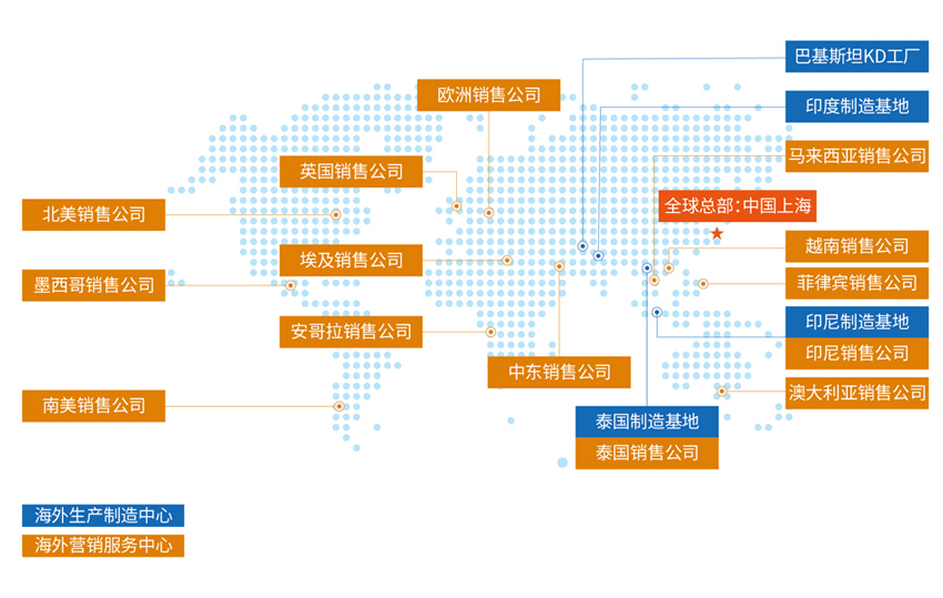上汽集團現(xiàn)在東北、華東、華南、西南、中南與西北等地區(qū),建設(shè)了15個整車基地以及相配套的零部件與物流基地,服務(wù)各地用戶并有效帶動當(dāng)?shù)亟?jīng)濟社會發(fā)展。同時,積極參與"一帶一路"建設(shè),初步建成集研發(fā)、制造、營銷、金融、物流等為一體的面向全球市場的汽車產(chǎn)業(yè)鏈,設(shè)立了4個海外整車制造基地,產(chǎn)品和服務(wù)已進入全球100余個國家及地區(qū)。